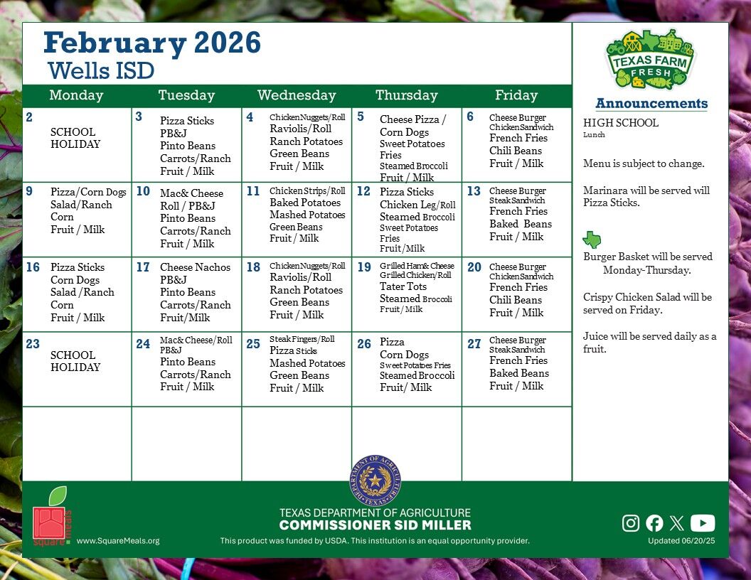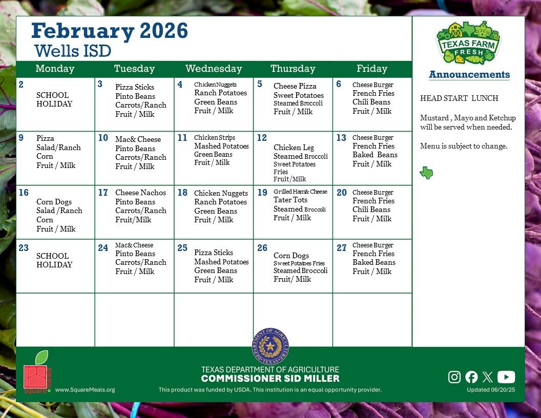February Cafeteria Menu